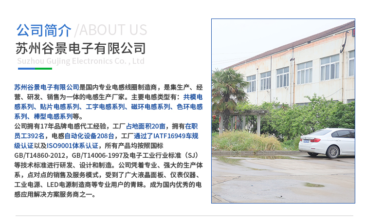 蘇州谷景電子有限公司,一家從事電感、濾波器、變壓器等產(chǎn)品的專業(yè)制造商。公司本著“誠實、敬業(yè)、創(chuàng)新、奉獻”的經(jīng)營理念,在“品質(zhì)優(yōu)先,勇于創(chuàng)新”的企業(yè)宗旨指導(dǎo)下,立志成為國內(nèi)好的電感應(yīng)用解決方案服務(wù)商之一。 詳情請咨詢0512-89162980